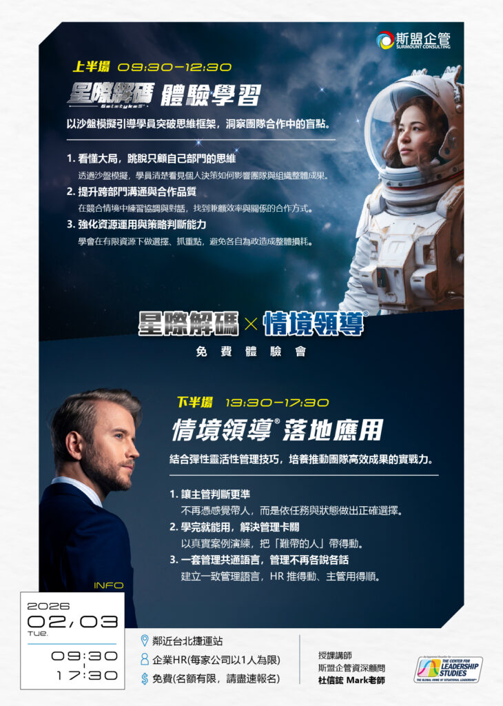 2/3(二) 一天體驗兩門課|星際解碼 × 情境領導® HR 免費體驗會